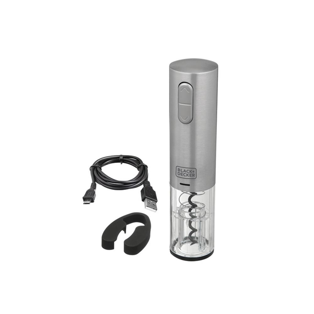 Degustar dos seus melhores vinhos ficou muito mais prático e elegante com o abridor elétrico de vinho inox W10 da BLACK+DECKER! Possui bateria de lítio de alta performance, permitindo abrir mais de 40 garrafas em uma única carga! Conta com uma luz de LED azul, que indica quando o produto está em uso ou carregando. Acompanha também um abridor de lacre e com carregador USB, trazendo facilidade e mobilidade, possibilitando que o abridor seja carregado em diversos aparelhos. Com a BLACK+DECKER, abrir e preservar seus vinhos fica fácil!