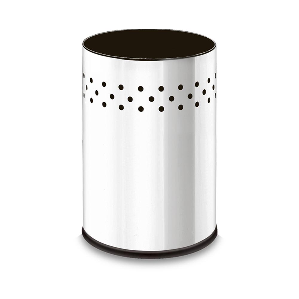 Perfeito para dormitórios, escritórios, salas de recepção e lojas, o cesto Gamma é resistente, fácil de limpar e pode ser utilizado como papeleira ou para lixo seco. Seu corpo em aço inox e seu fundo plástico evitam o acúmulo de resíduos e garantem longa vida ao recipiente. O acabamento cromado possui pequenos orifícios e, além de elegante, combina com qualquer estilo de decoração. A lixeira tem capacidade para 9,4L e ø 20cmx29cm de dimensão.