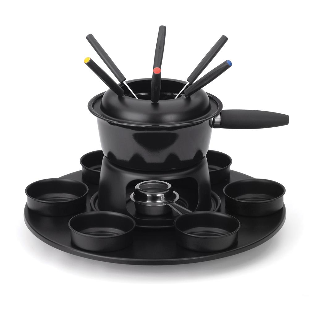 O Conjunto para Fondue Forma Lugano Carroussel 1,4 litros 17 peças possui base giratória que serve até 6 pessoas.