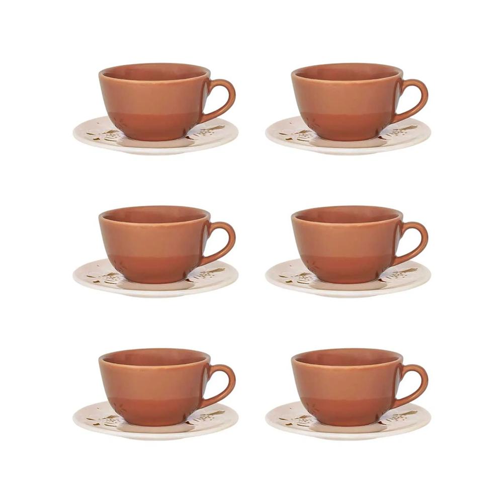 Conteúdo da Embalagem: 6 Xícaras de Chá (200 ml de capacidade) e 6 Pires (14 cm de diâmetro)