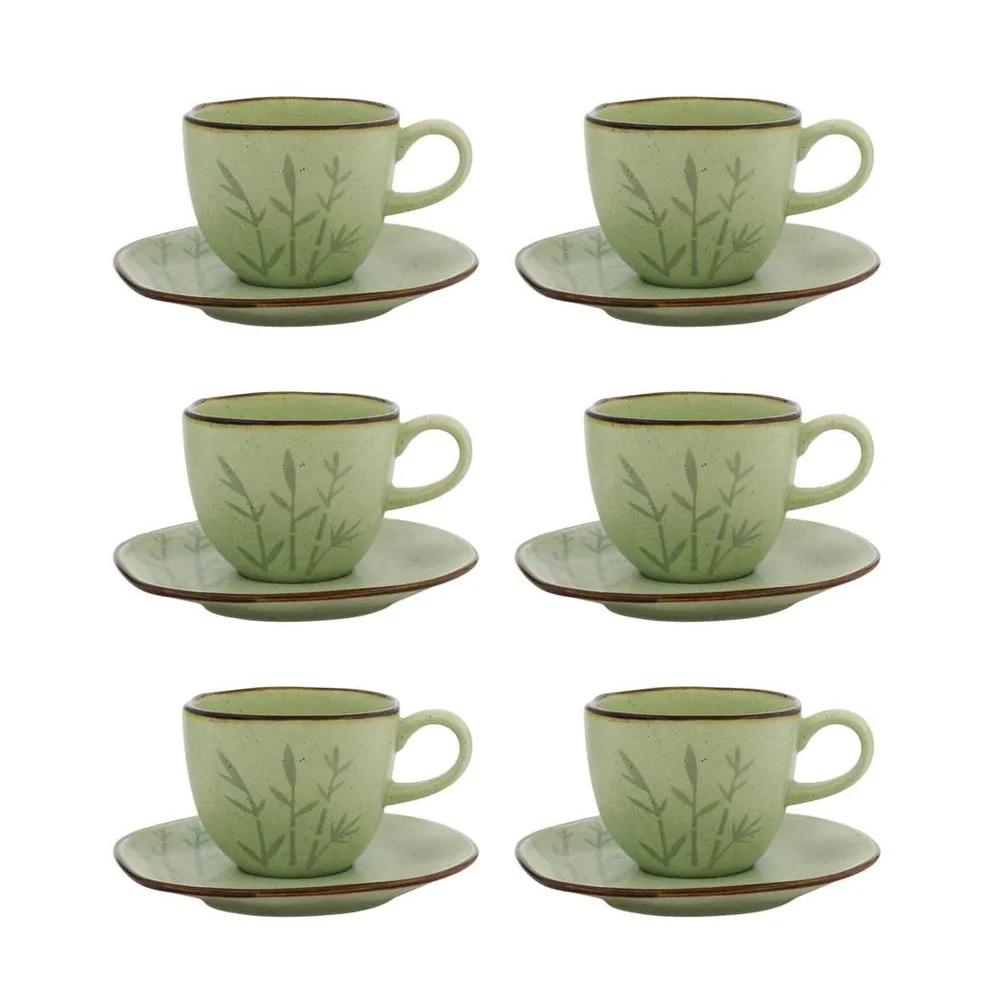 Sirva chá ou café com a beleza natural e o encanto da cultura japonesa com o Jogo de 6 Xícaras de Chá Ryo Bambu. Inspirada na filosofia que valoriza a beleza na imperfeição, cada xícara e pires têm um formato orgânico e único. A decoração em destaque, que utiliza a técnica manual de esmalte reagente, traz a estampa de bambu para a sua mesa, adicionando uma estética rústica e elegante.