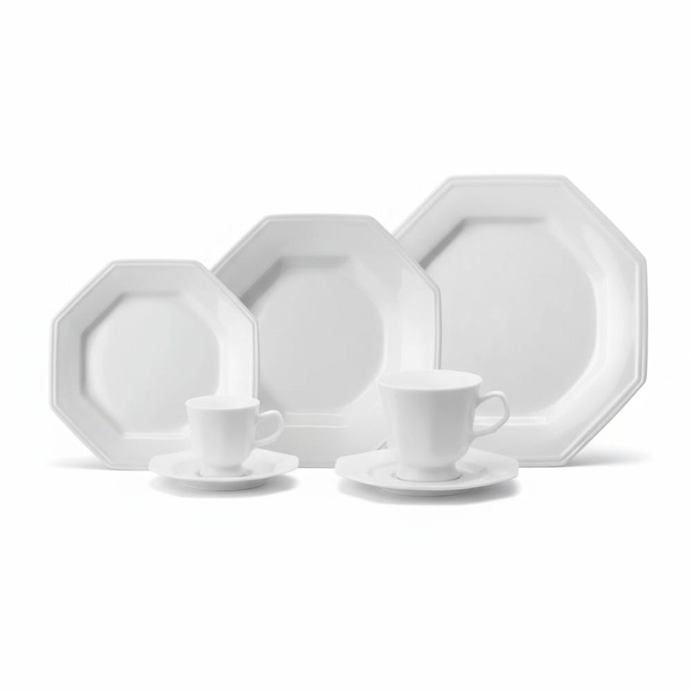 A composição completa inclui todos os pratos necessários e um serviço duplo de xícaras (chá e café), garantindo que você esteja sempre preparado para receber com requinte e padronização. A porcelana de alta qualidade é um material impermeável, resistente e totalmente seguro.