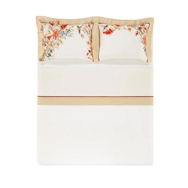 A primavera, estação do renascimento das flores e da natureza, é representada junto ao amor na obra do reconhecido artista Botticelli. Os dias são luminosos, os campos ficam floridos, os vinhedos e pradarias passam a ser mais verdes. O desenho minucioso da cama Costa Dorata apresenta de forma exuberante a manifestação de vida e cores que esta estação traz. Diferencias: Fronhas dimensionadas. Lençol com eslástico estampado. Almofada estampada com bordado, ziper invisivel e detalhe em codonê. Acabamento tecido mercerizado. Composioção: 1 Jogo de lençol queen 2,40mx2,60m e 2 fronhas 50cmx70cm. Cetim 300 fios 100% Algodão Egípcio
