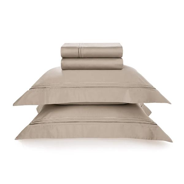 A cama Fortore transmite simplicidade e elegância por meio do seu bordado de ponto royal. Suas cores neutras favorecem o uso singular, bem como em coordenação com de demais itens da coleção. Composição: Cetim 300 fios. 100% Algodão Egípcio. Acabamento: Tecido sanforizado e mercerizafo. Diferencial: fronhas e dobra feita com ponto royal tripla. Lencol com elástico. Jogo de lençol Casal 2,20mx2,60m e 2 fronhas 50cmx70cm