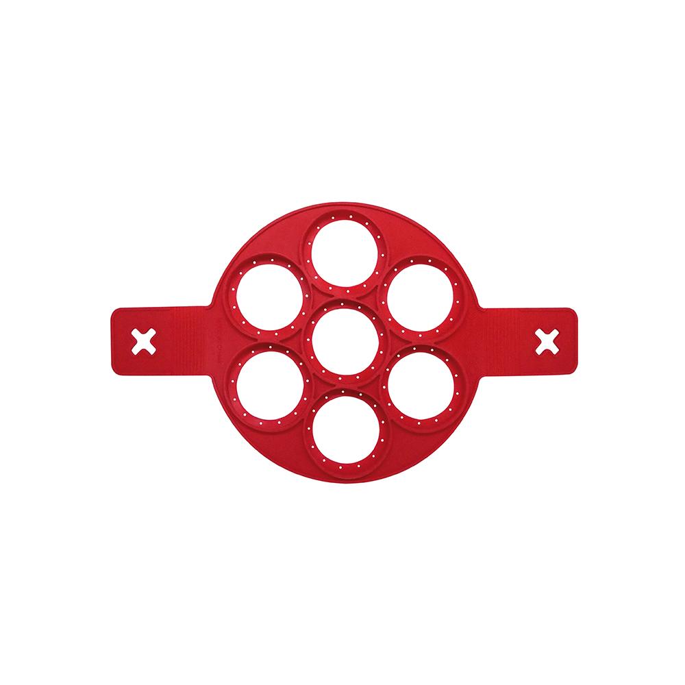 Produzido em silicone a forma para panquecas e ovos é flexível e fácil para desenformar.