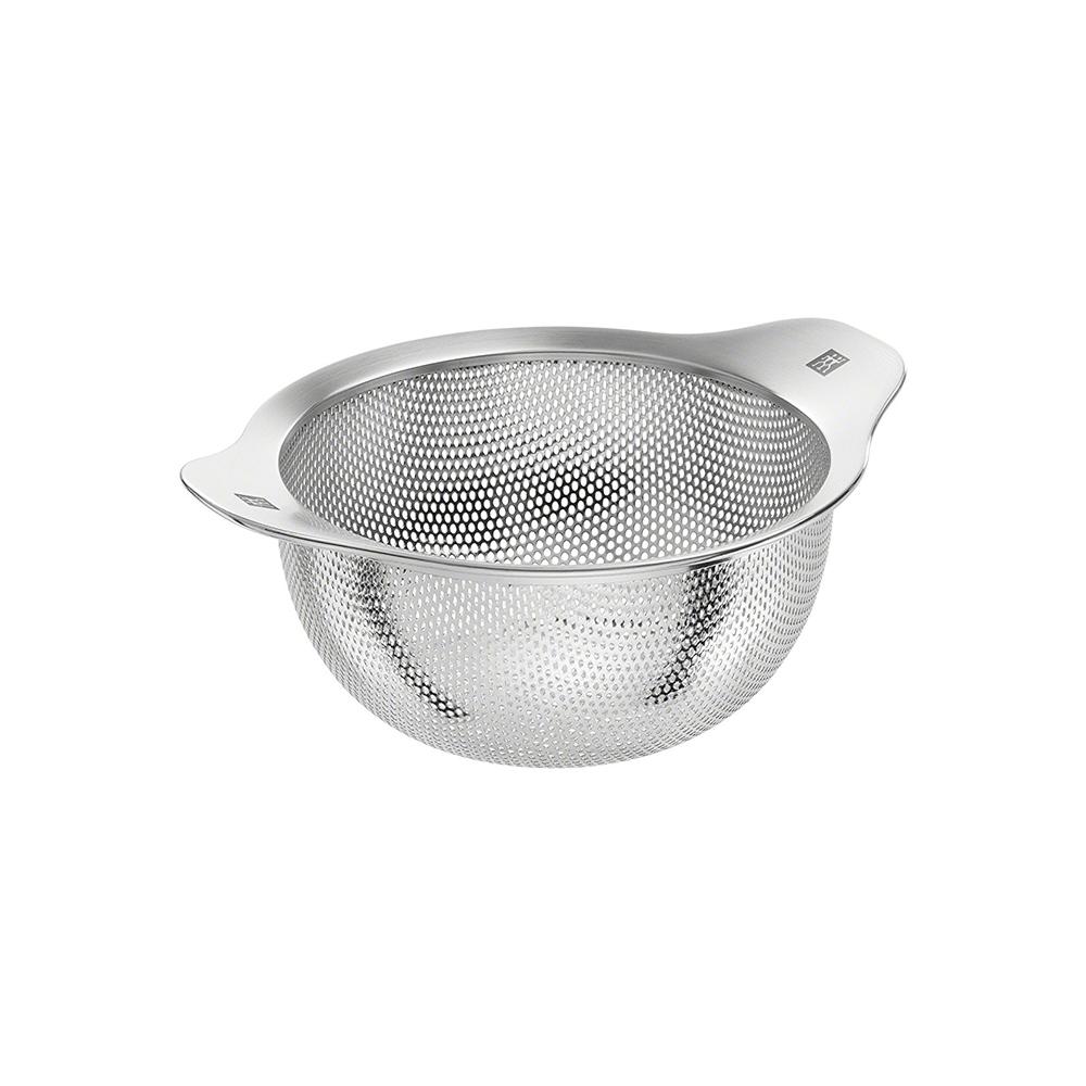 Peneira de aço inox 18/10, ideal para lavar e enxaguar frutas e vegetais, também serve na preparação alimentos cozidos como macarrão ou batatas. Projetado para caber em potes e panelas do tamanho correspondente ao da peneira. Seguro para lava-louça.