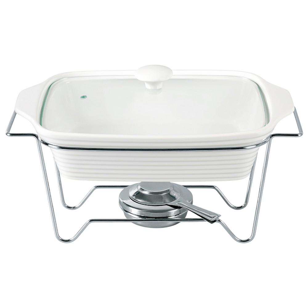O rechaud retangular em cerâmica Fracalanza Eleonora é a solução ideal para servir seus pratos com elegância e manter a temperatura perfeita. Este rechaud de 2,2 litros combina o charme da cerâmica com a máxima funcionalidade, sendo ideal para uso em recepções ou no cotidiano. Seu formato retangular e compacto facilita o encaixe em mesas de buffet.