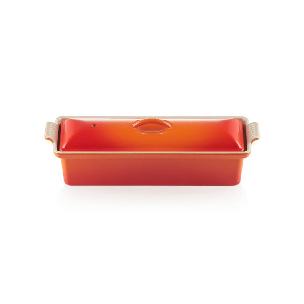 Apreciada há muito tempo como uma travessa para cozinhar como para servir, a Terrine vem dos primeiros protótipos Le Creuset, nos anos 1930 e 1940, quando era utilizada para uma variedade de receitas, incluindo foie gras, patês e pães, além das incríveis receitas doces. Perfeita para surpreender seus amigos de um jeito bem criativo.