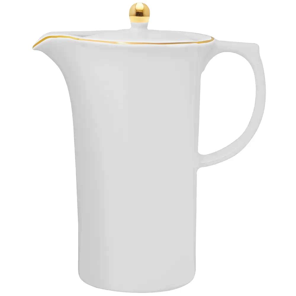 Fabricado em porcelana, o bule se destaca por seu tom branco puro, sua durabilidade e a capacidade de manter a temperatura da bebida por mais tempo. O grande diferencial está no delicado e brilhante friso ouro que adorna a peça, adicionando um toque de luxo e um charme atemporal que harmoniza perfeitamente com qualquer decoração.
