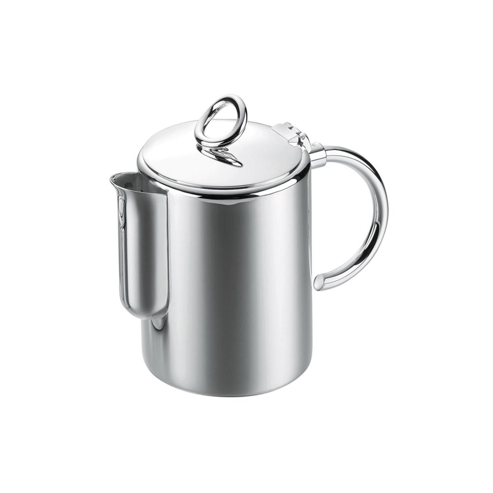 Este bule Vertigo prateado é moderno com um toque de requinte e elegância lúdica. Ele funciona como o adorno perfeito para qualquer chá da tarde, brunch ou sobremesa. Especialmente quando é combinado com a jarra de creme Vertigo r e o açucareiro l . O motivo ousado da Vertigo, um anel grosso e sutilmente assimétrico, muitas vezes colocado de maneira divertida, pode ser encontrado em todas as peças da coleção projetada por Andre Putman.