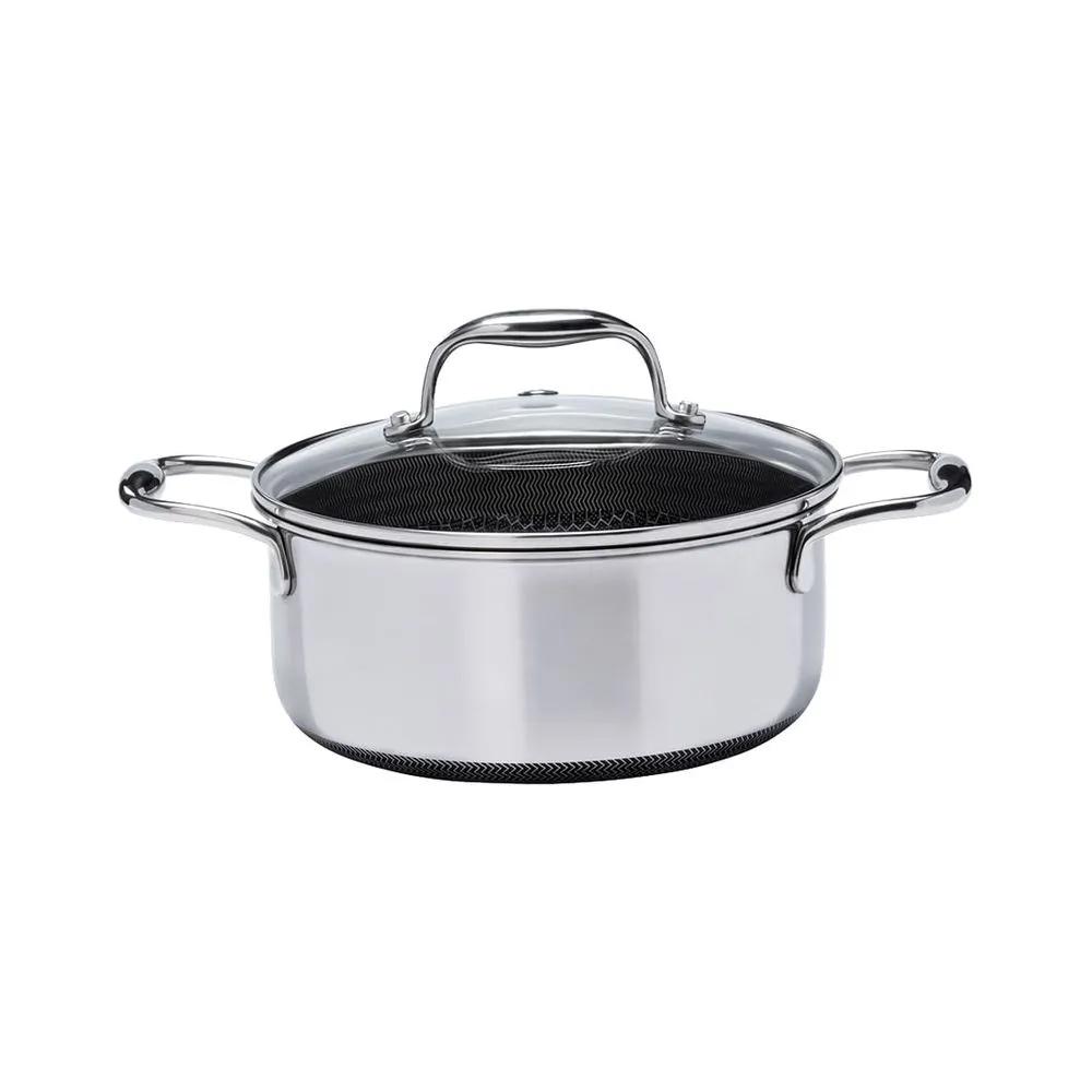 Prepare refeições incríveis com a Caçarola CookingPro Hive, um utensílio de alta performance que une tecnologia e design para sua cozinha. Sua estrutura tripla garante um aquecimento rápido e uniforme, enquanto a inovadora tecnologia de micromalha em formato de colmeia 100% em aço inox protege o revestimento antiaderente, tornando-a antirrisco. Essa combinação permite o uso de menos óleo e garante maior controle de temperatura, facilitando o preparo e a limpeza.