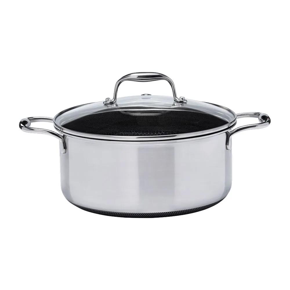 Prepare refeições incríveis com a Caçarola CookingPro Hive, um utensílio de alta performance que une tecnologia e design para sua cozinha. Sua estrutura tripla garante um aquecimento rápido e uniforme, enquanto a inovadora tecnologia de micromalha em formato de colmeia 100% em aço inox protege o revestimento antiaderente, tornando-a antirrisco. Essa combinação permite o uso de menos óleo e garante maior controle de temperatura, facilitando o preparo e a limpeza.