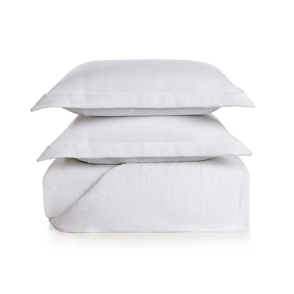 Acabamento: Colcha portuguesa com Jacquard dimensionado; Verso em 200 Fios Percal