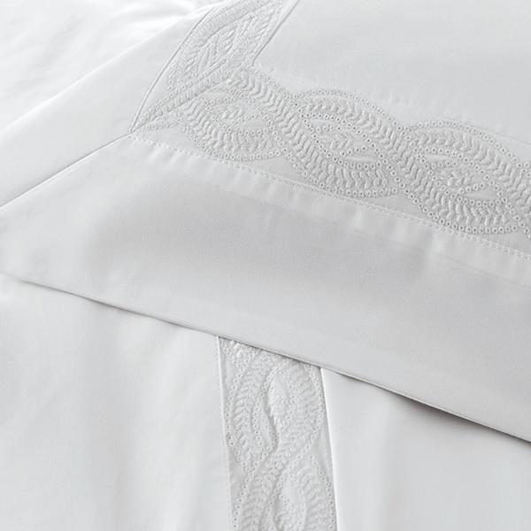 A sutileza da natureza e a forma das folhas que cercam a arquitetura e a história do Castelo di Milazzo, localizado no topo de uma colina na região da Sicília, foram a inspiração para este bordado. Entrelaçados tornam explícito o movimento, fluidez e minimalismo.