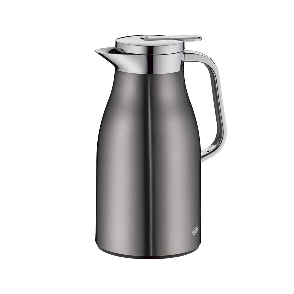 A garrafa térmica Skyline da Alfi é sinônimo de sofisticação e desempenho. Produzida com corpo em alumínio laqueado chumbo e acabamento cromado na alça e tampa, combina funcionalidade e elegância para o dia a dia. A ampola interna com tecnologia AlfiDur (vidro temperado de parede dupla com banho de espelho) garante alta eficiência térmica, mantendo líquidos quentes por até 12 horas e frios por até 24 horas. Conta ainda com o sistema ?Easy?, que permite abertura e fechamento com um clique, usando apenas uma das mãos. Um item indispensável para servir com estilo e praticidade.