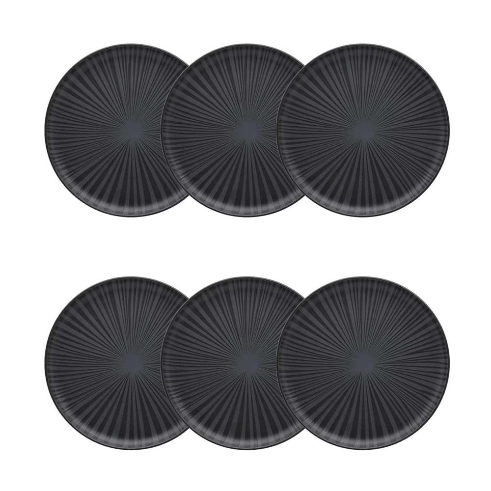 Traga a força da natureza para sua mesa com o Jogo de 6 Pratos de Sobremesa Flat Ônix. Inspirada no design biofílico, que busca conectar pessoas e produtos à natureza, esta coleção de cerâmica exalta a beleza da pedra ônix com um acabamento acetinado na cor preta. Linhas em alto-relevo partem do centro dos pratos, simbolizando as ramificações presentes na pedra, que é conhecida por sua proteção e por afastar energias negativas.