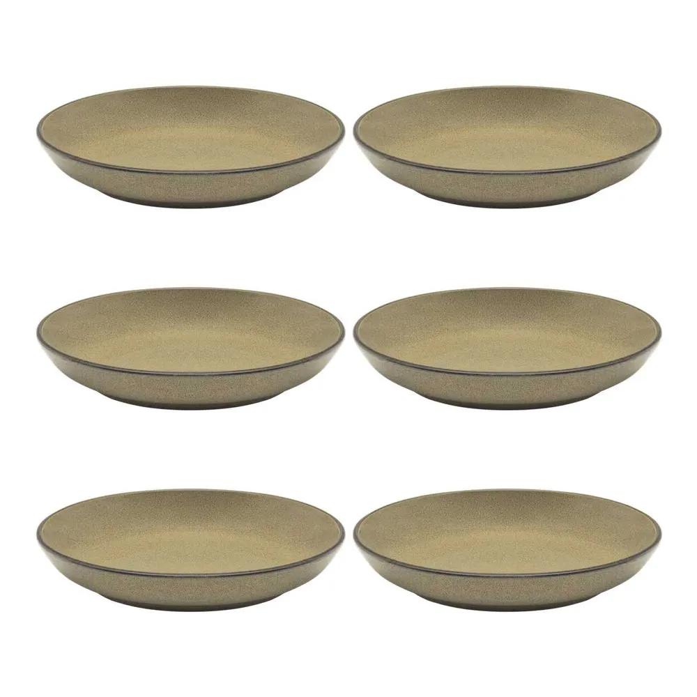 Traga a tranquilidade da natureza para sua mesa com o Jogo de 6 Pratos Fundos Flat Ocre. Inspirada no design biofílico, que busca conectar pessoas e produtos à natureza, esta coleção de porcelana traz a beleza do tom ocre. O acabamento brilhante da peça, combinado com um filete marrom-escuro aplicado manualmente nas bordas, adiciona um toque artesanal e sofisticado.