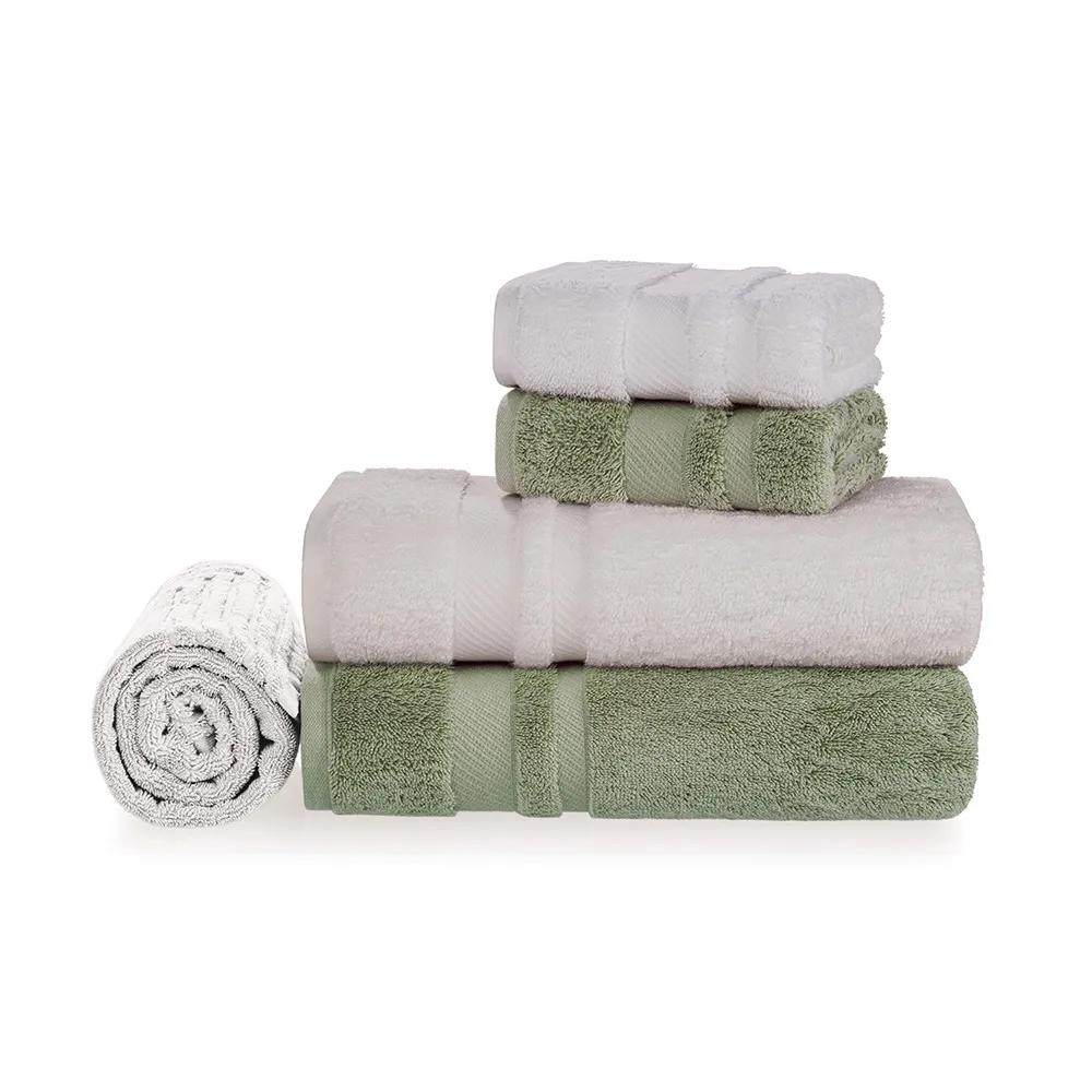 Quantidade de Peças: 5 Peças (2 Toalhas Banhão + 2 Toalhas de Rosto + 1 Toalha de Piso)