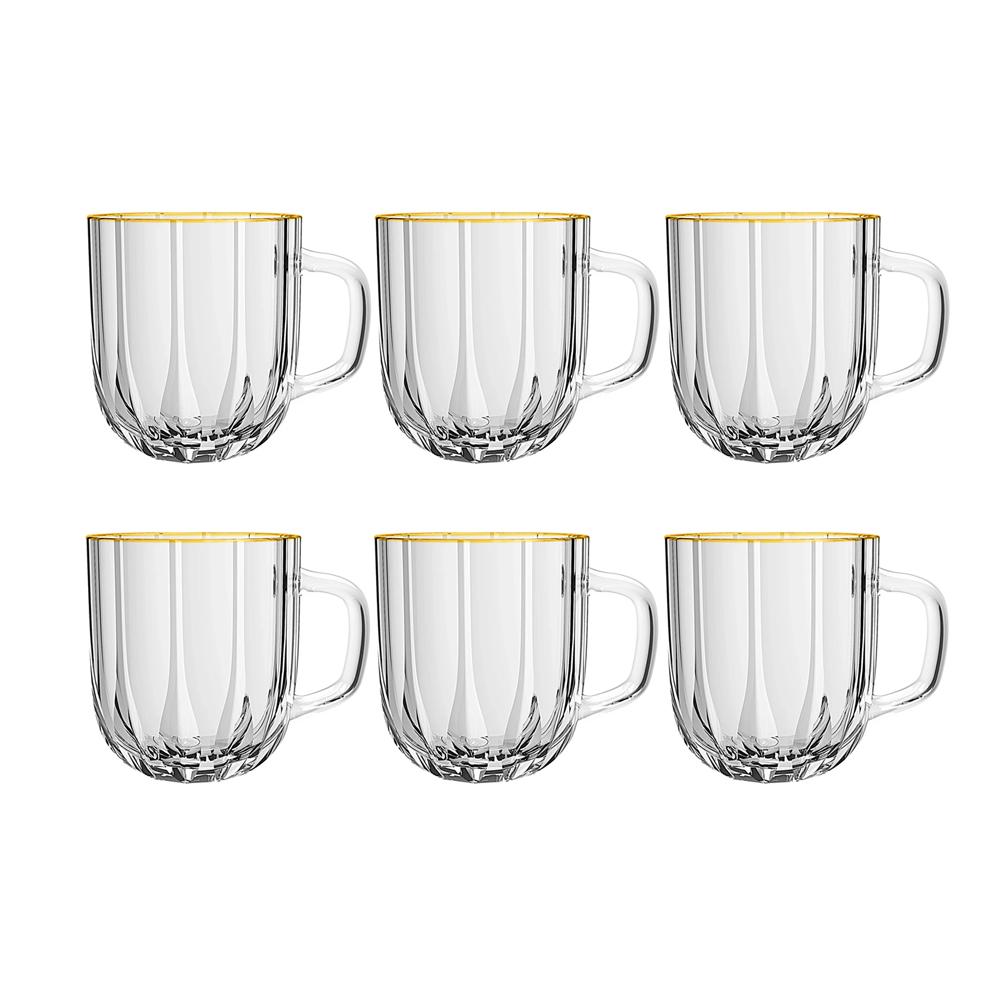 Com design elegante e acabamento sofisticado, as canecas da linha Refinatto encantam pelo brilho e delicadeza da borda dourada. Fabricadas em cristal ecológico, garantem resistência, transparência e um toque refinado para o serviço de bebidas quentes ou frias com charme.