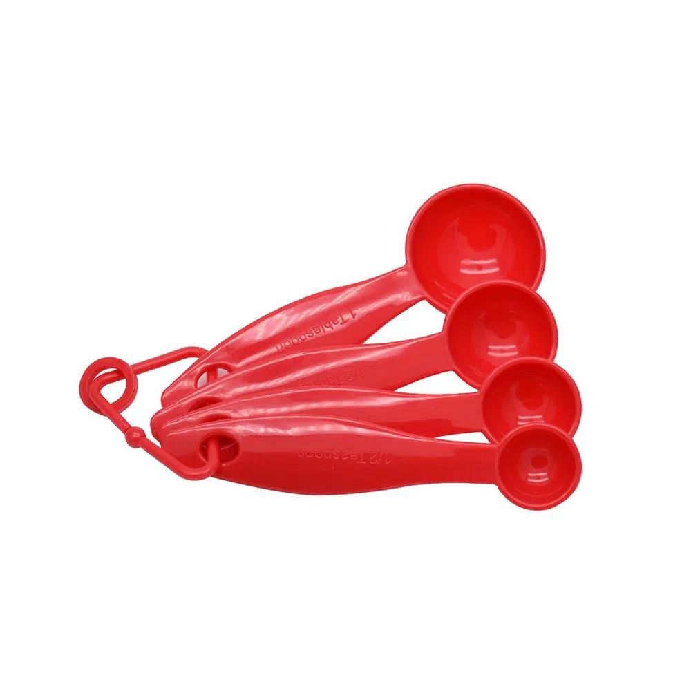Conjunto composto por quatro colheres medidoras em tamanhos diferentes. Fabricados em plástico resistente. Facilitam o momento de adicionar ingredientes com mais precisão em suas receitas. Os medidores se encaixam para fácil armazenamento.