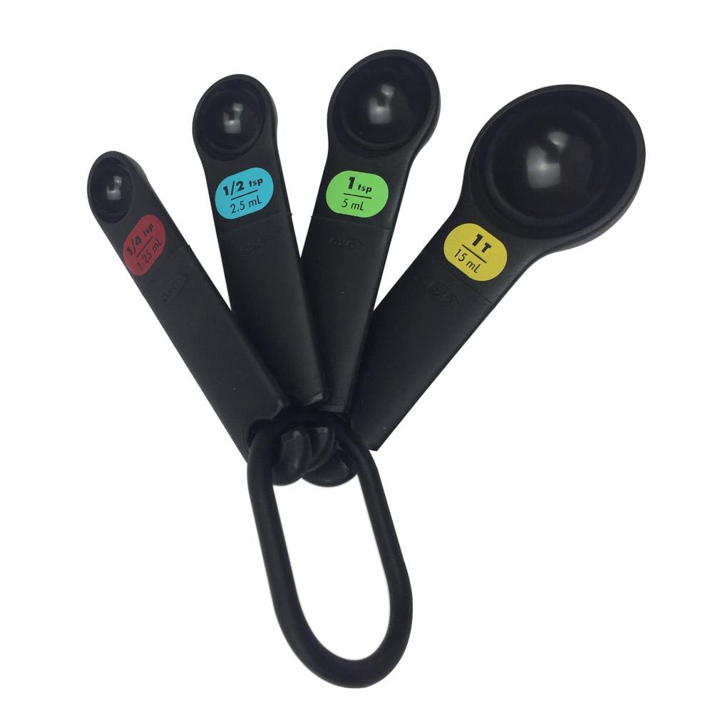 O conjunto de colheres de medição de 4 peças tem um recurso de de encaixe que permite que você retire a colher que você precisa, deixando o resto perfeitamente encaixado. As alças possuem punhos macios, confortáveis ??e antiderrapantes e marcações de medição fáceis de ler e codificadas por cores.