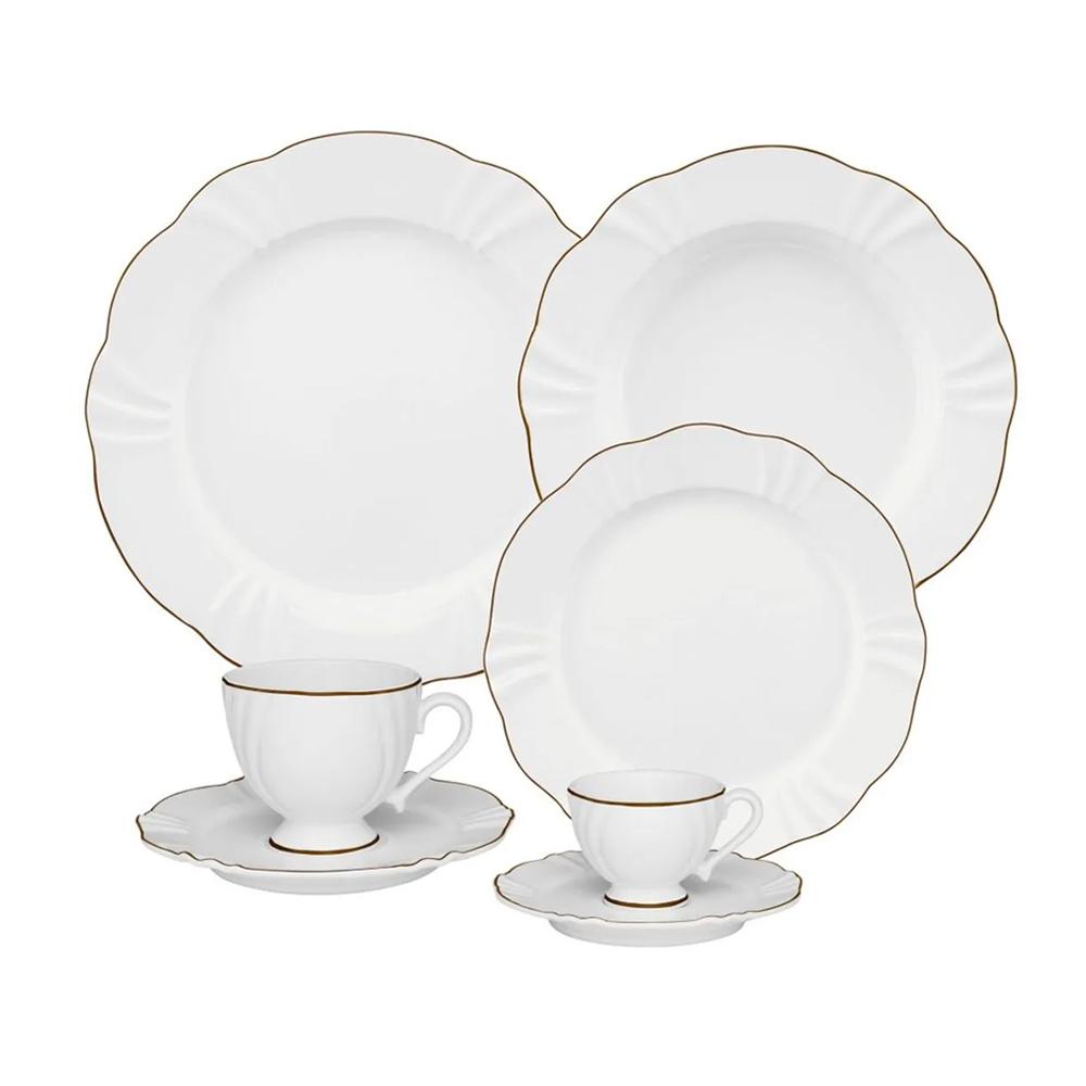 O Aparelho de Jantar, Chá e Café Oxford Soleil Victória é a escolha perfeita para quem busca requinte sem abrir mão da discrição. O ouro, símbolo de luxo e riqueza, está presente em delicados filetes que contornam cada peça.