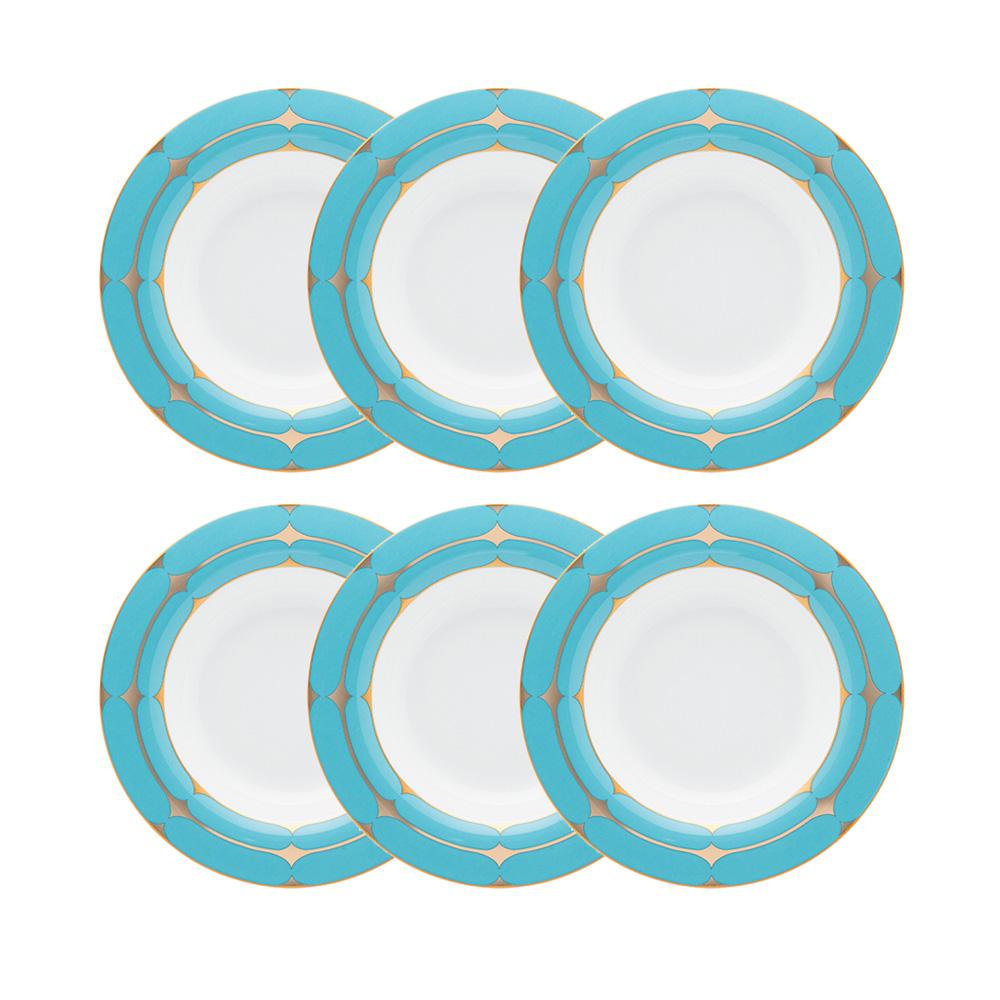 Feito com a delicada Bone Porcelain, uma porcelana de técnicas milenares, o conjunto de pratos fundos da coleção Strauss Folies é composto por 06 peças.