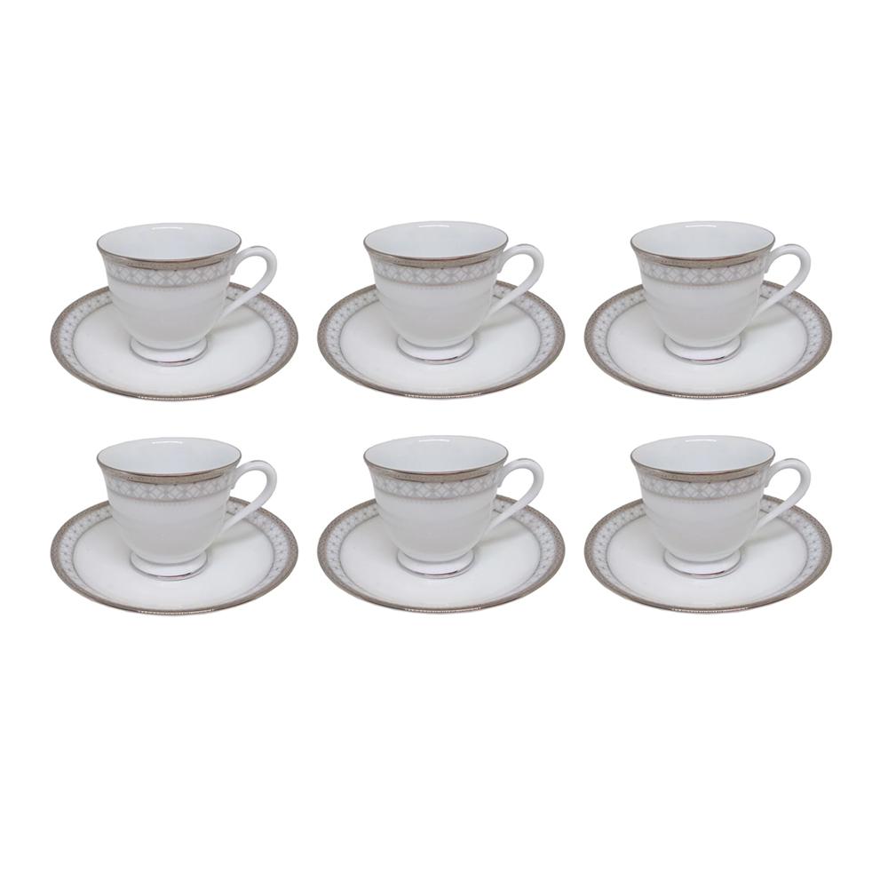 Jogo de xícaras café em porcelana Noritake Rochester Platinum 6 peças