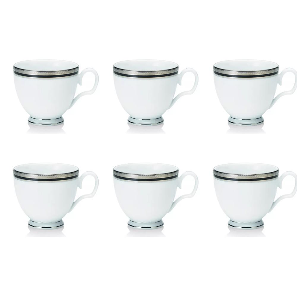 Austin Platinum traz elegância sofisticada para a mesa! Este impressionante padrão apresenta porcelana branca brilhante nítida, combinada com faixas elegantes de preto e platina. As 2 faixas pretas são bolinhas e sólidas, e a faixa externa de platina é gravada com um design de scroll infinito. Austin Platinum oferece componentes de configuração de local, bem como uma variedade de peças de serviço e acessórios. Austin Platinum é durável o suficiente para o uso diário e pode ser lavado na máquina de lavar louça!