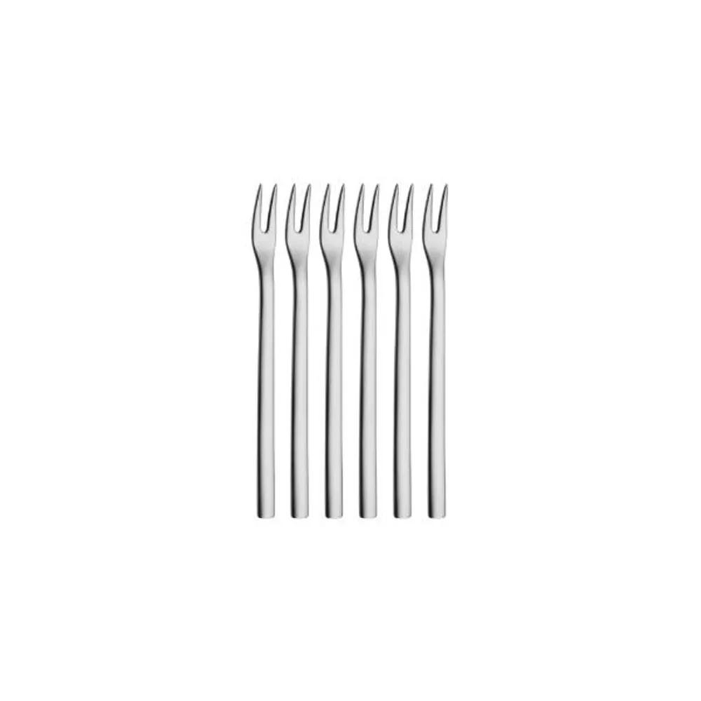 Desenvolvido com o exclusivo aço inox Cromargan e excelente acabamento polido pela Alemã WMF, o conjunto possui os garfos perfeitos para servir seus petiscos em grande estilo. Design clássico e formato diferenciado para o serviço. O aço inox Cromargan utilizado na produção das peças oferece alta resistência a riscos, mesmo após o uso prolongado. Parte da linha Nuova, apresenta um novo conceito em talheres sofisticados para diversas ocasiões.