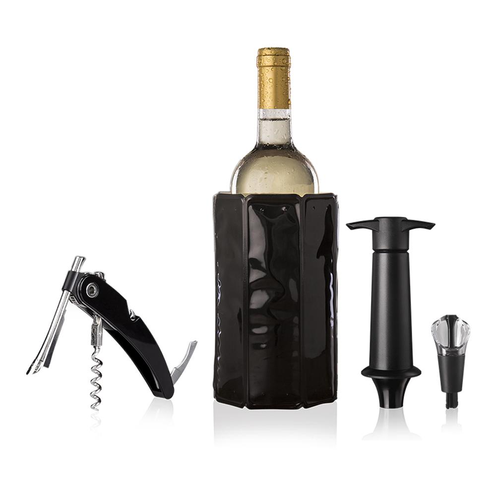 O Wine Set Premium contém 4 produtos Vacu Vin para abrir, resfriar, servir e armazenar seu vinho. O presente perfeito para os entusiastas do vinho de todos os níveis. Vem em uma caixa de presente premium.