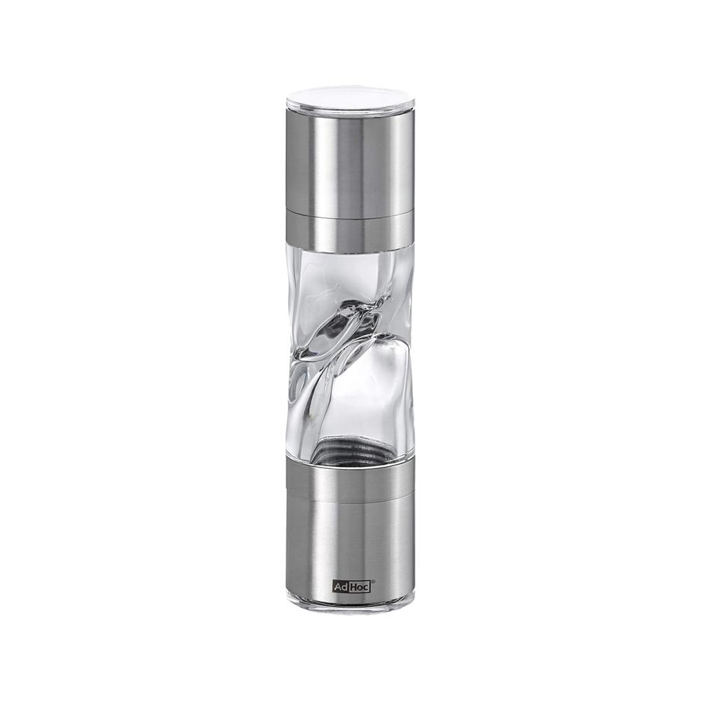 Compacto, prático e sofisticado, o moedor Duomill da AdHoc combina dois moinhos em um só corpo: um para sal, outro para pimenta. Fabricado em aço inox e acrílico, conta com o mecanismo cerâmico CeraCut® ? eficiente, ajustável, livre de ferrugem e odores. Ideal para quem busca economia de espaço sem abrir mão de funcionalidade e design refinado.
