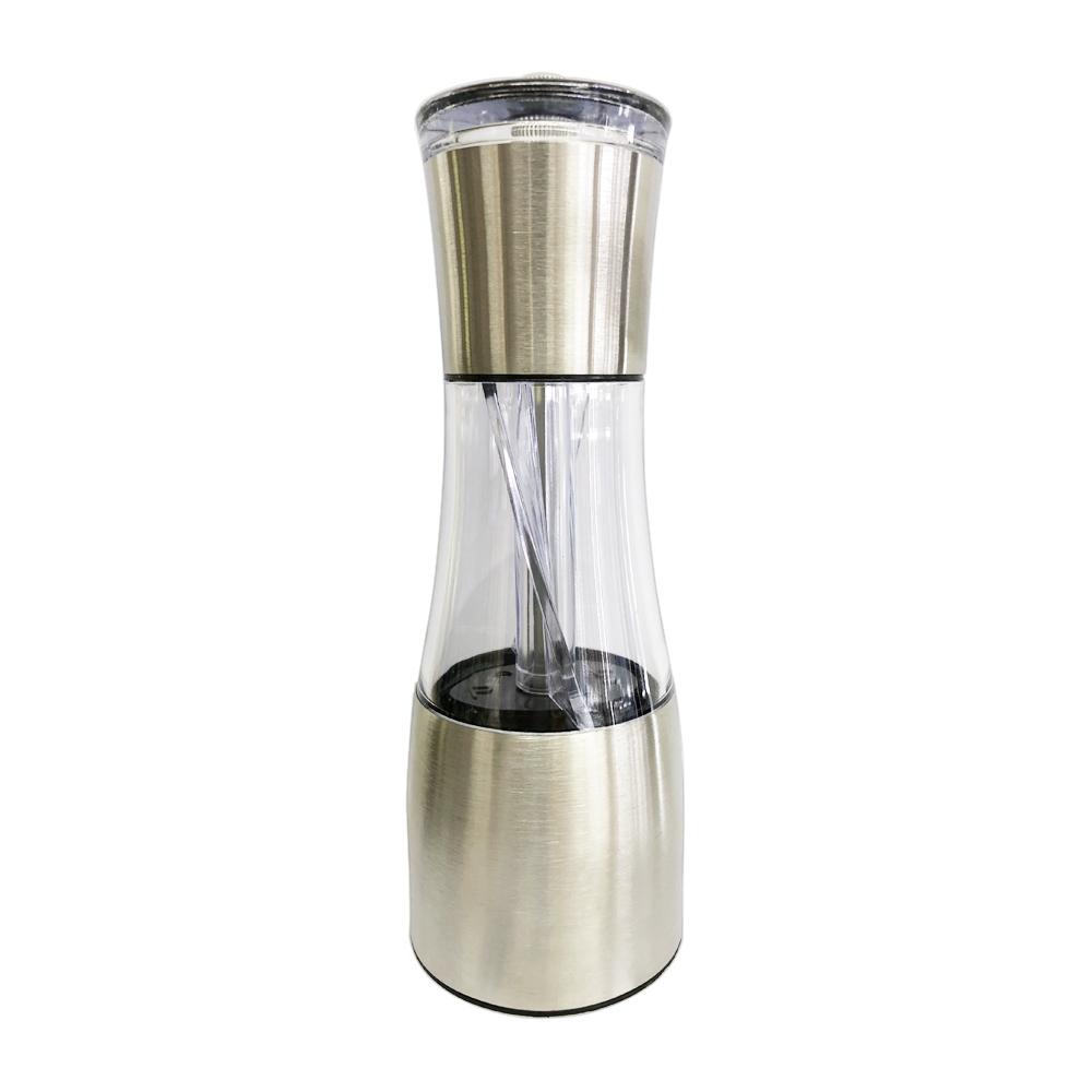 Moedores Mill 2 em 1 é usual para sal e pimenta, feito em acrílico e aço inox 6,6X19,5cm. Ficou muito mais prático moer o sal ou pimenta para temperar seus alimentos. Com design elegante, possui engrenagens de alta resistência e durabilidade. Tem regularem do tamanho do grão para você usar na medida certa e deixar seus alimentos com aquele gostinho delicioso e sabor de quero mais.