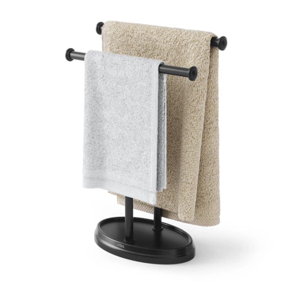 O porta-toalhas Palm mantém as toalhas limpas e organizadas e sua bancada organizada. O elegante suporte de toalha é projetado usando metal forte e um acabamento de níquel elegante.