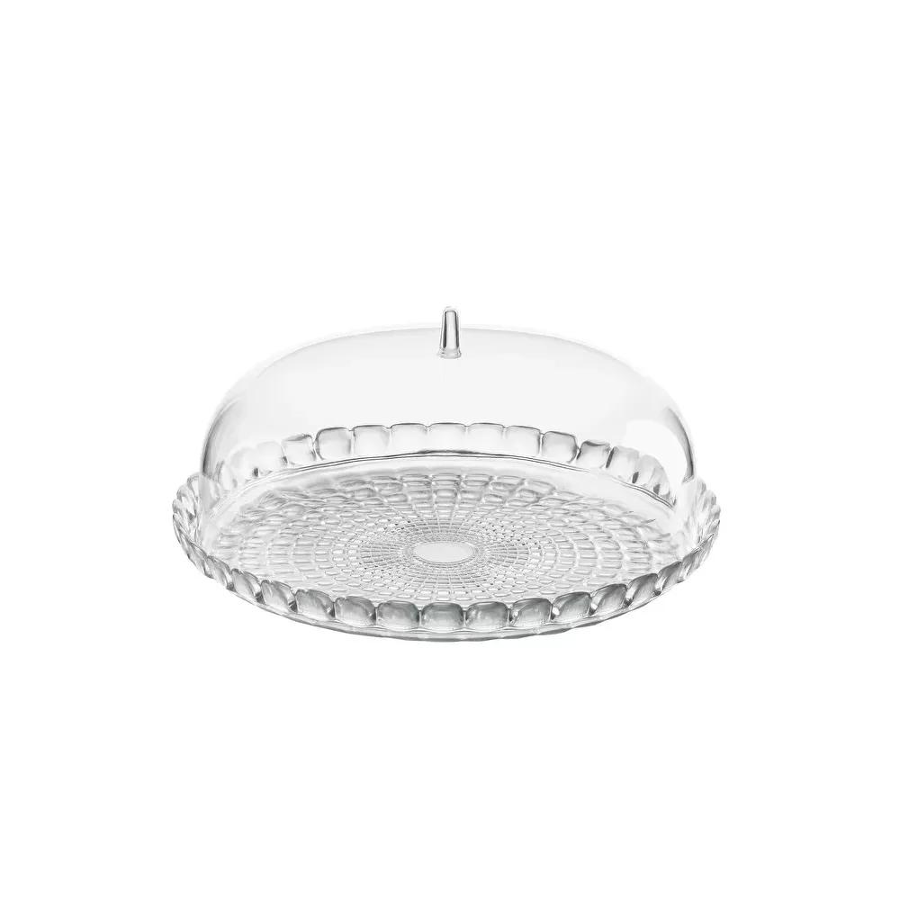 Este é um jogo para servir bolo, com uma cúpula lisa e um prato com o distinto padrão xadrez em relevo da Tiffany. O prato reversível foi concebido para servir bolos macios na parte lateral com rebordo elevado e bolos secos ou tartes na parte plana.