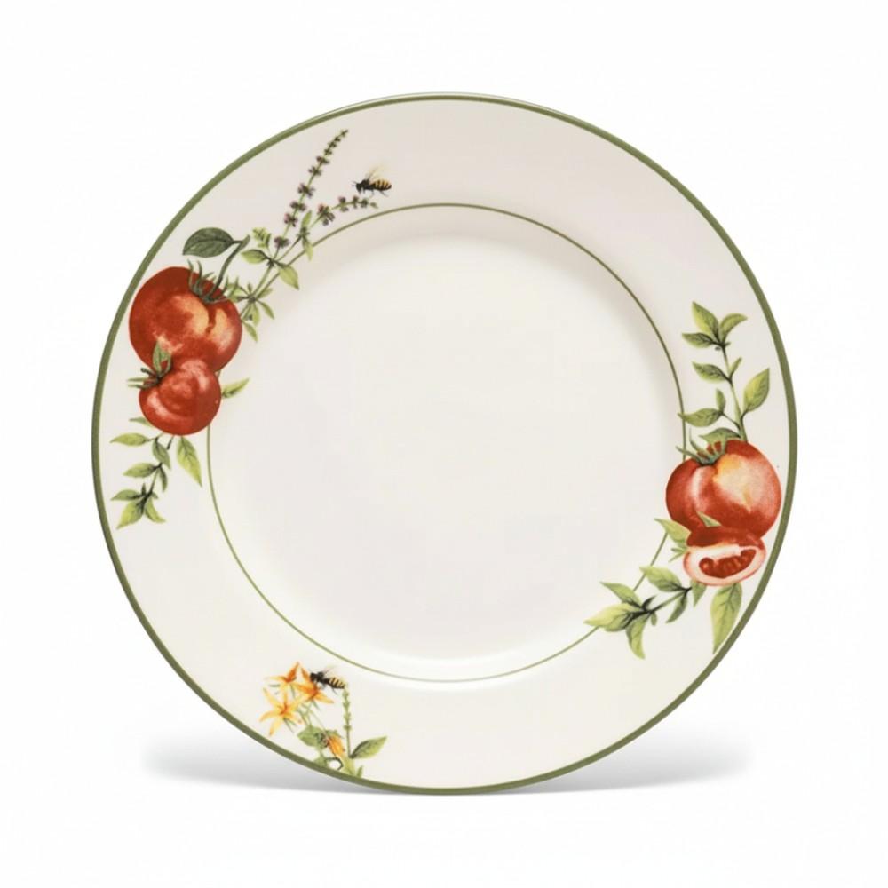 Sua confecção em cerâmica superior garante robustez e durabilidade, ideal para o uso diário sem perder o charme artesanal. A estampa Pomodoro e Basilico é o grande diferencial, apresentando uma aquarela vibrante de tomates maduros e manjericão fresco. Este design temático confere personalidade instantânea à mesa, harmonizando-se perfeitamente com cozinhas rústicas ou modernas.