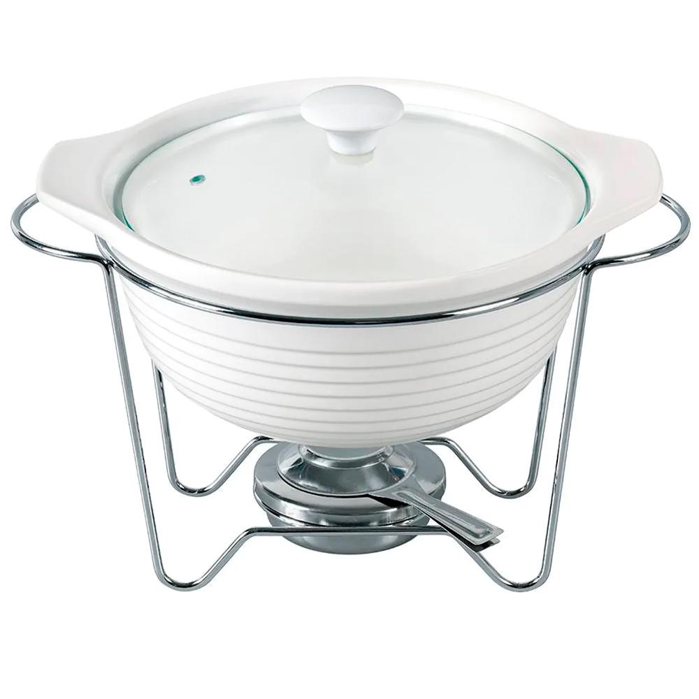 Este rechaud oferece a praticidade de uma peça que otimiza o preparo e a apresentação, combinando a beleza da cerâmica com a durabilidade e a facilidade de limpeza.