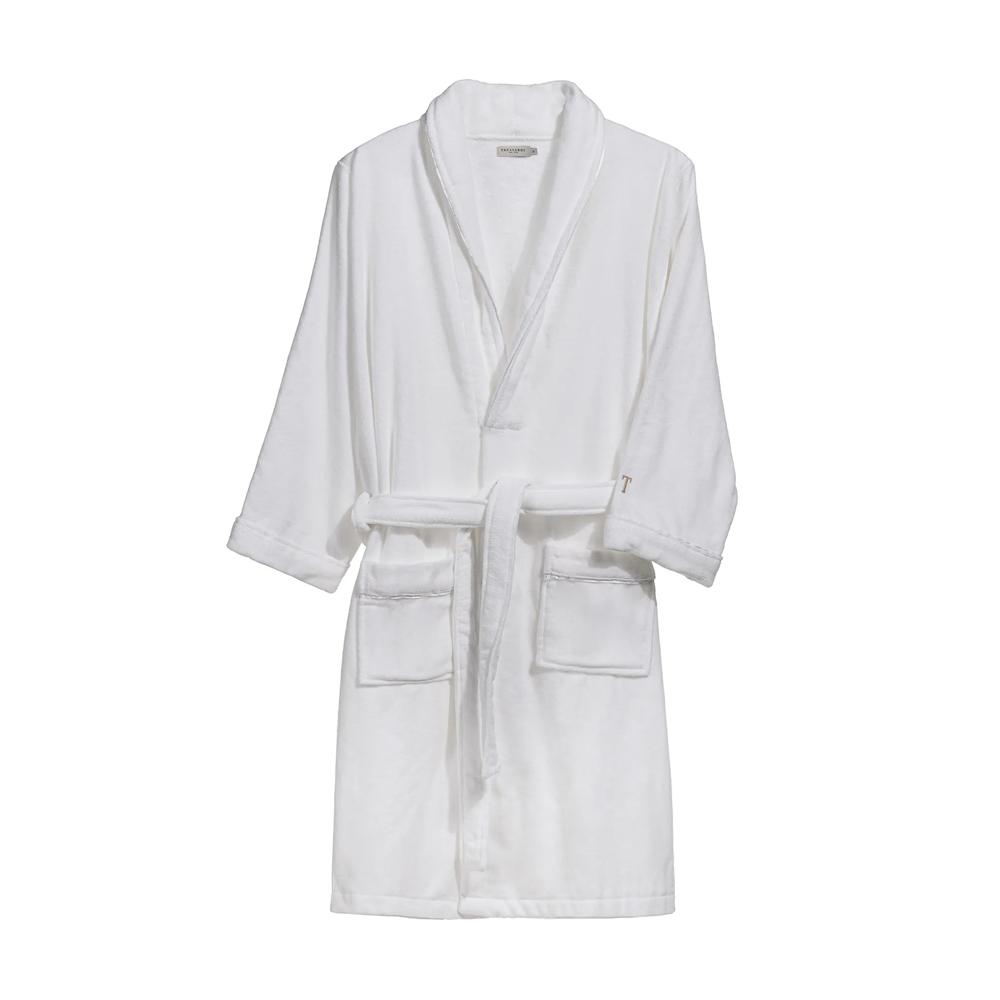 Os roupões Trussardi são mais do que uma vestimenta; são um convite ao conforto e ao aconchego. Feito de algodão com tecnologia Cotone Speciale, o roupão Amália oferece uma sensação envolvente e macia. Com nova modelagem e atenção aos detalhes, apresenta bordado sofisticado do "T" nas mangas. Seu toque aveludado e fibras leves proporcionam um caimento impecável, criando uma experiência digna de spa no conforto do lar.
