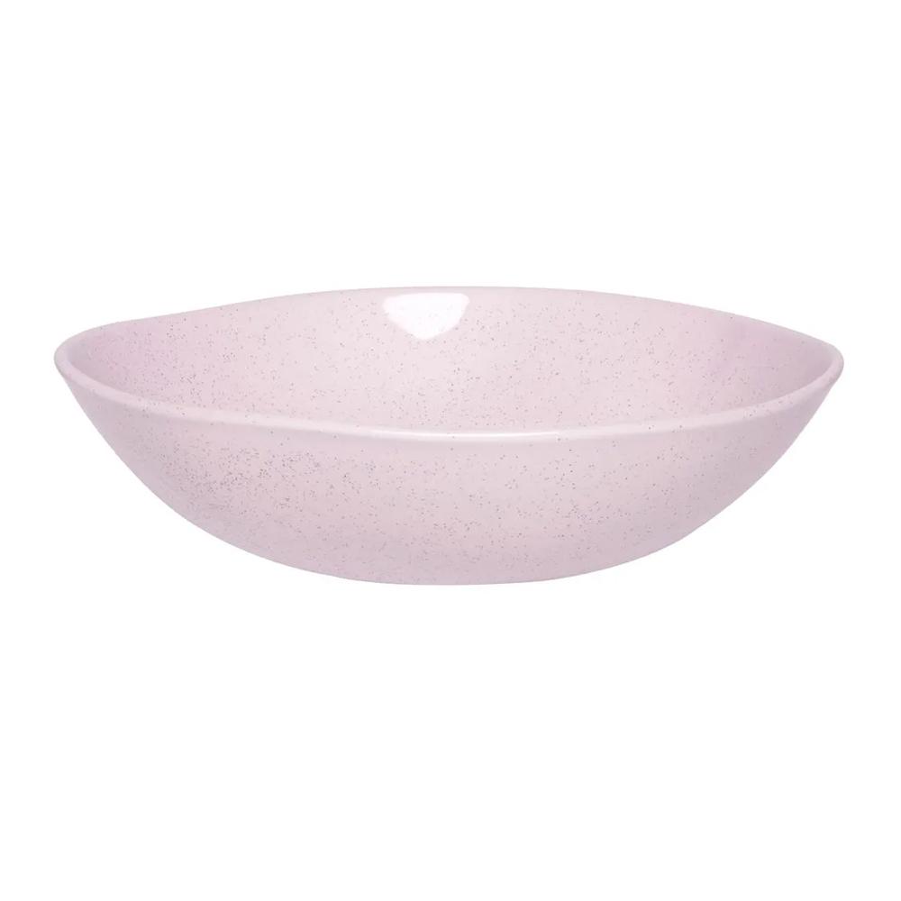 A decoração Pink Sand traz um suave tom de rosa com um sutil pontilhado que remete à areia rosada, criando um visual acolhedor e elegante. Seu formato orgânico e a estampa discreta elevam a apresentação de qualquer prato.