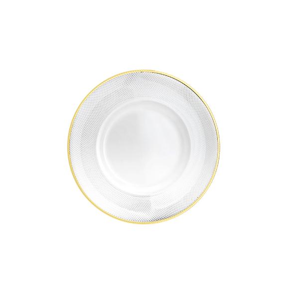 Com um diâmetro ideal de 32,5cm, este Sousplat oferece o espaço necessário para acomodar pratos de diferentes tamanhos, protegendo sua toalha de mesa ou o seu móvel contra respingos e calor. É um item prático e essencial para criar camadas e demarcar o lugar de cada convidado com elegância inquestionável. É o presente perfeito para noivos ou colecionadores que buscam peças de luxo e alto valor percebido.