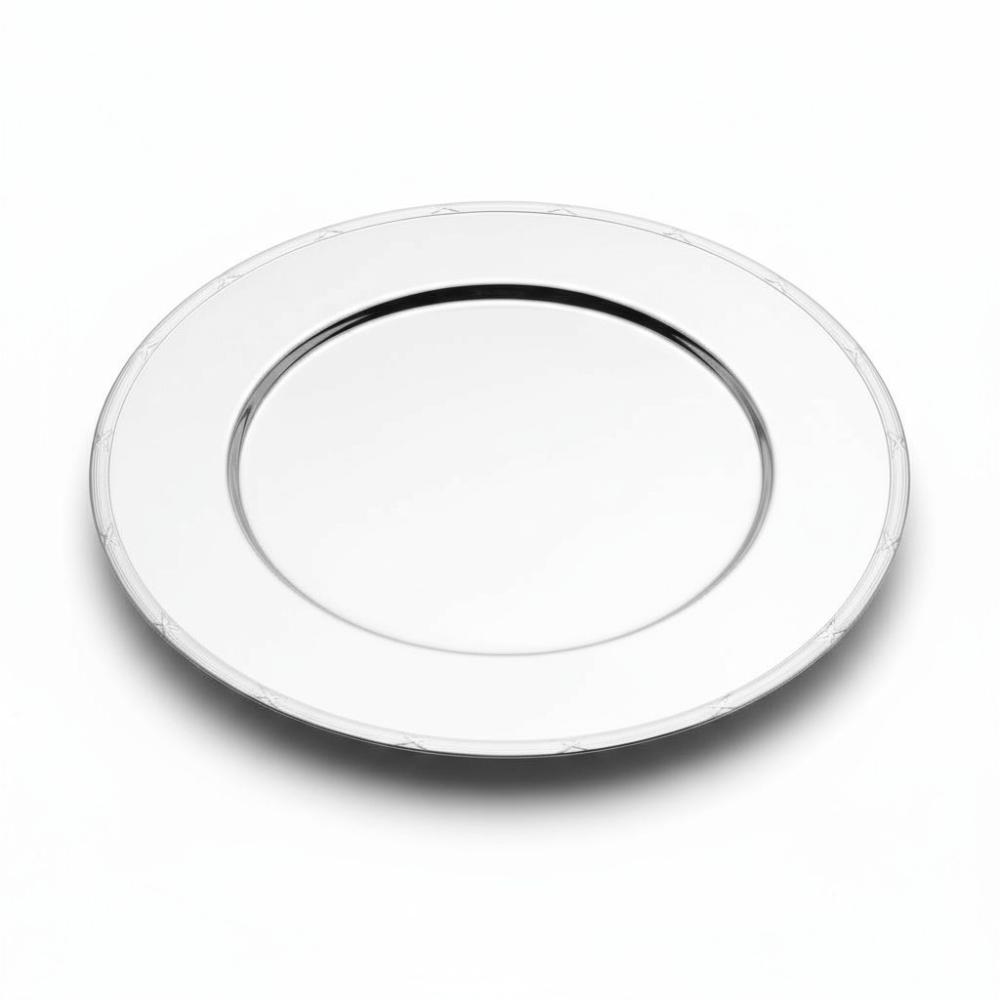 O Sousplat em Prata Silverlux Croise é a peça indispensável para quem deseja adicionar luxo e sofisticação à mesa posta. Com seu diâmetro de 32cm, ele serve como base perfeita para pratos, protegendo a toalha de respingos e delimitando elegantemente o espaço de cada convidado.