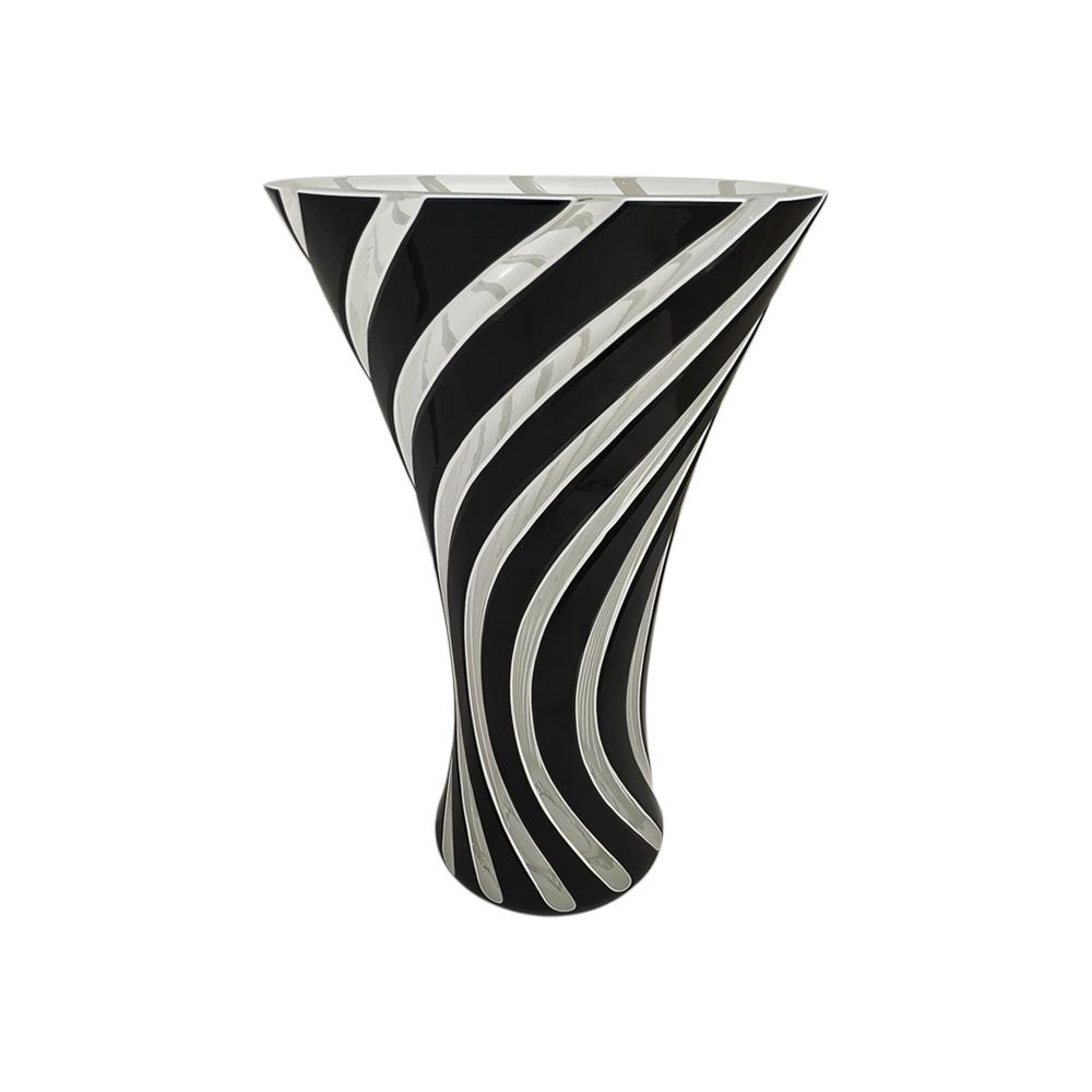 O vaso é esculpido em cristal, um material conhecido por seu brilho inigualável e sua transparência que permite que a luz dance sobre suas superfícies. O design L569 se destaca pelo contraste clássico e sofisticado das cores preto e branco, criando um visual impactante e contemporâneo que se adapta perfeitamente a diversos estilos de decoração.